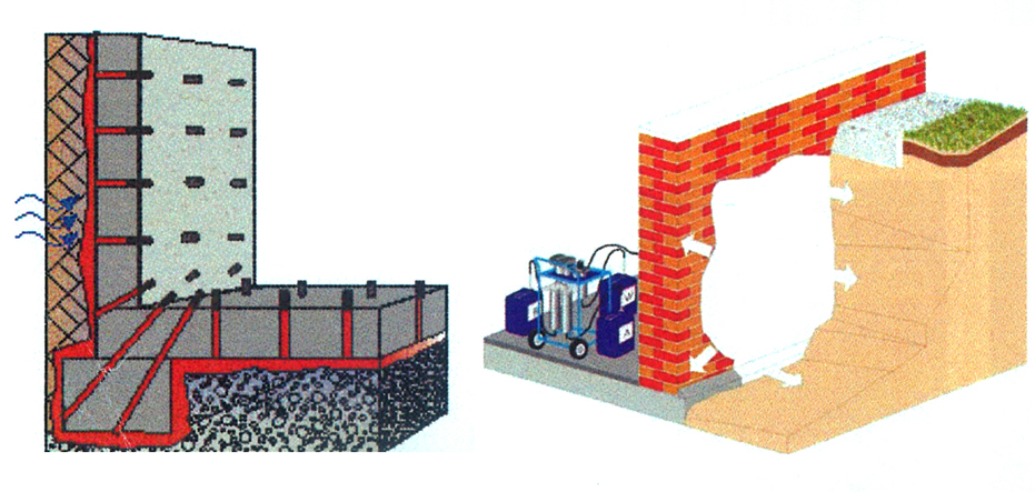 - possibilità, intervenendo dall'interno del fabbricato o struttura, di realizzare una impermeabilizzazione di cortina all'esterno della muratura controterra o della platea, di tipo esteso, continuo ed elastico;
